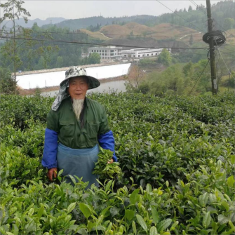 每年清明谷雨,选摘初展肥壮嫩芽,手工炒制,该茶外形微卷,状似雀舌,绿中泛黄,银毫显露,且带有金黄色鱼叶(俗称黄金片)。入杯冲泡雾气结顶,汤色清碧微黄,叶底黄绿有活力,滋味醇甘,香气如兰,韵味深长。